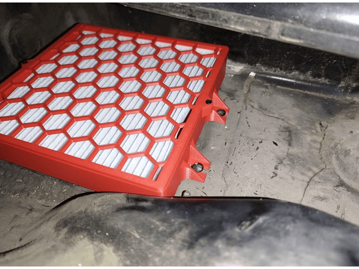 Melhora a qualidade do ar no interior do teu VW clássico com este kit OEM+ de filtro de habitáculo, compatível com Golf Mk2, Jetta Mk2, Corrado e Passat B3 com a peça de referência 191819098A. Fabricado em ASA preto resistente aos UV, este conjunto inclui uma grelha superior em favo de mel, isolamento na face inferior, e um filtro moderno de alta eficiência, comum em veículos de 2019, para garantir fácil reposição futura.